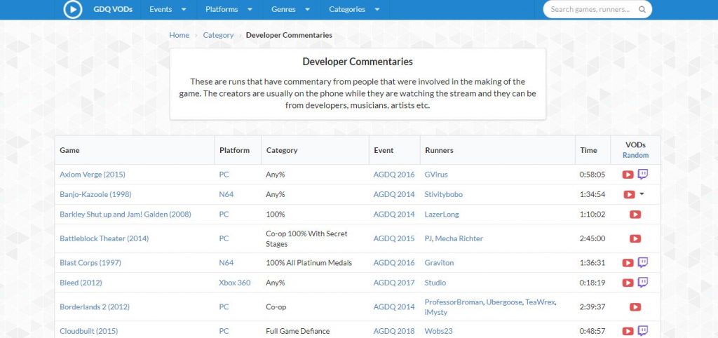http://gdqvods.com/category/developer-commentaries/